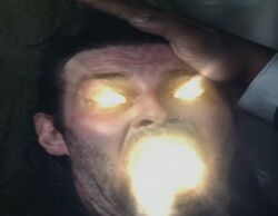 Dylan is able to effectivly "wipe out" the insides of other people through touch. While using this ability, the insides of Dylan's victims glow brightly before fading away. This light seemingly incinerates the target's insides and leaves nothing left behind. (The Partner Part 1)