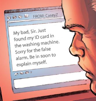 Hana poses as Casey Z. Smith and sends a message to Pentagon security.