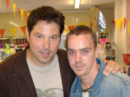 Greg Grunberg and Mike Foy on the set of Heroes.