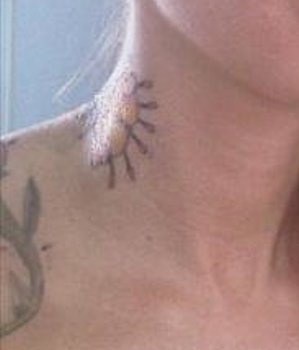 Lydia has tattoos on the right side of her neck.