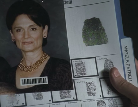 Building 26 has a file on Angela, inside which there is a photo of her.