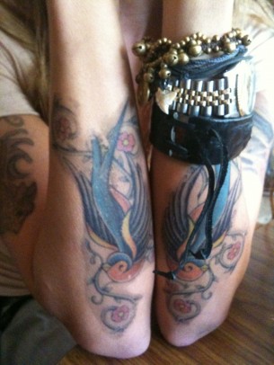 [[Lydia]] has [[Lydia's tattoos|tattoos]] on her forearms. |