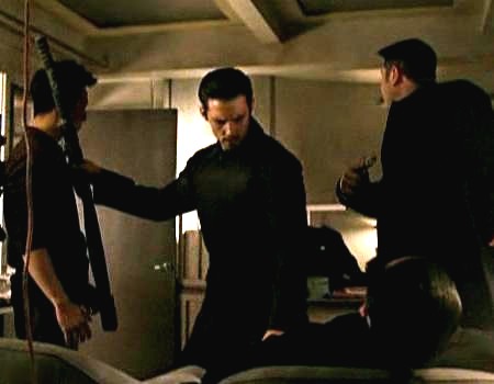 While time is stopped, Peter disarms some of Matt Parkman's team and rescues Ando and Hiro.