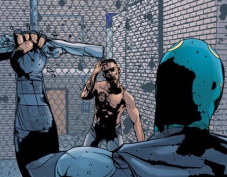 El Vengador uses his enhanced strength to crush a gun.