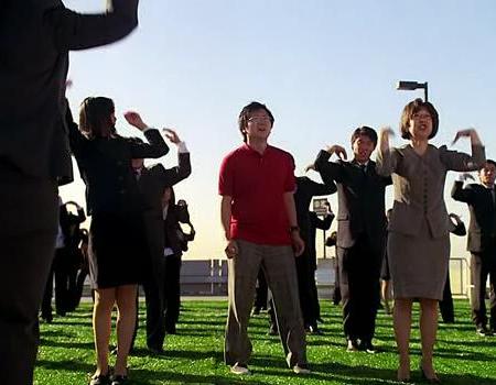 Hiro Nakamura teleports back to Tokyo, Japan from Midland, TX in the middle of an employee workout at Yamagato Industries.