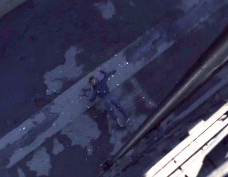 Claire demonstrates her ability to defy death by leaping from a tall building.
