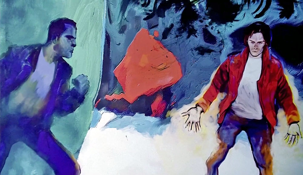 Sylar creates a painting of himself preparing to attack Ted Sprague.