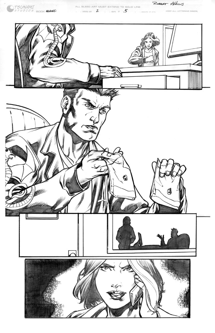 Robert Atkins draws the line art for a page of Trust Issues, Part 2.