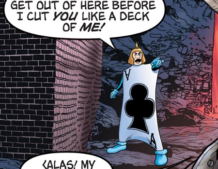 Hiro imagines a Riverdale security guard to be an living ace of spades from Alice in Wonderland.