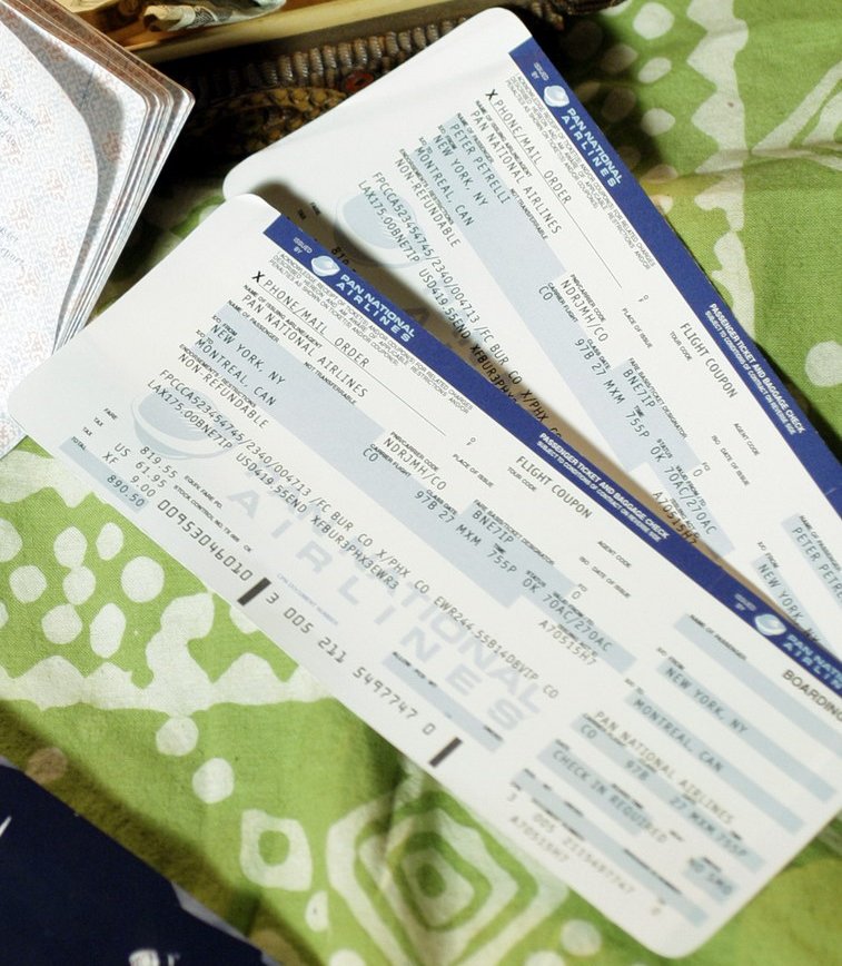Inside the box, Peter finds an open airline ticket for Montreal, Canada from New York, NY.