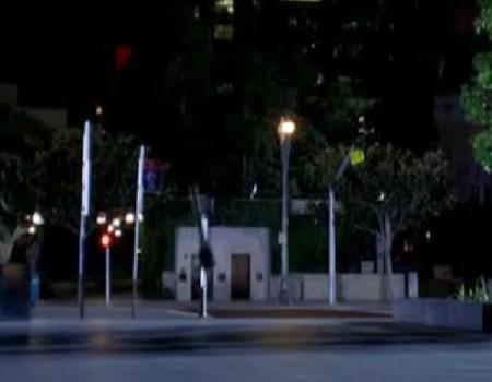 A traffic meter flies across Kirby Plaza.
