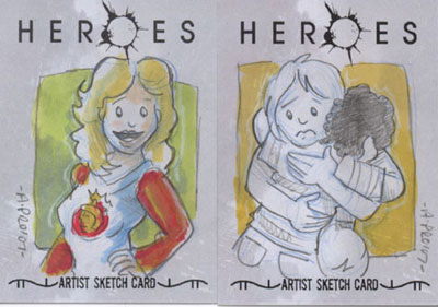Amy Pronovost draws several trading cards.