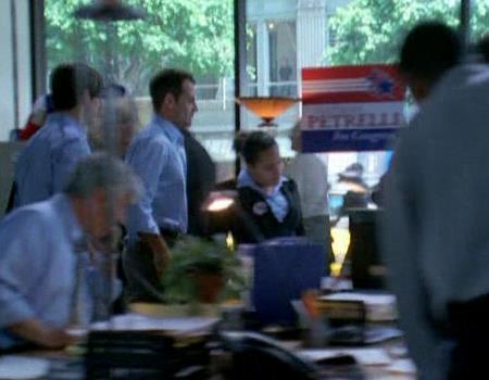 Peter talks to Nathan inside Nathan's campaign headquarters.