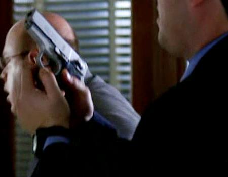 Matt carries his weapon as he tries to protect Aron Malsky from an assassin.