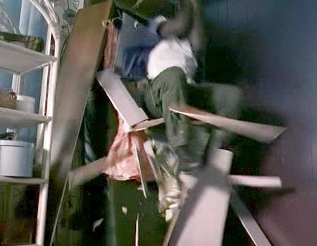 Jessica Sanders hurls D.L. Hawkins across the room using her enhanced strength.