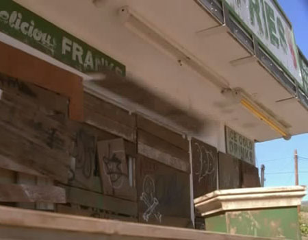 Sylar uses telekinesis to remove planks from the door of Big Jim's Franks & Fries.