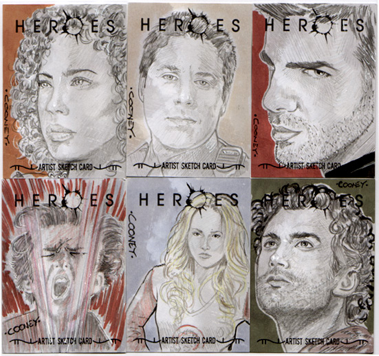 Dan Cooney draws an assortment of trading cards.