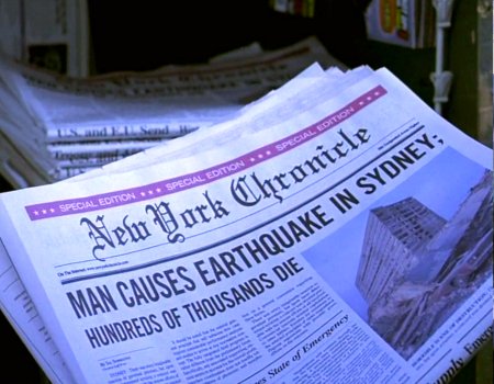 imported>Ryangibsonstewart The front page of the ''New York Chronicle'' reports that a man in Sydney, Australia caused an earthquake. {{image-screenshot|304=t|item=t}} |