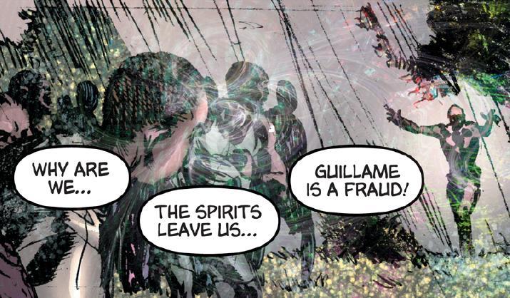 Guillame tries to use his power to alter the emotions of his people, but his son somehow stops him.