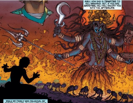 Mohinder's grandmother tells Mohinder stories about Kali.
