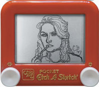 Christoph Brown creates Heroes art on a pocket-size Etch A Sketch.