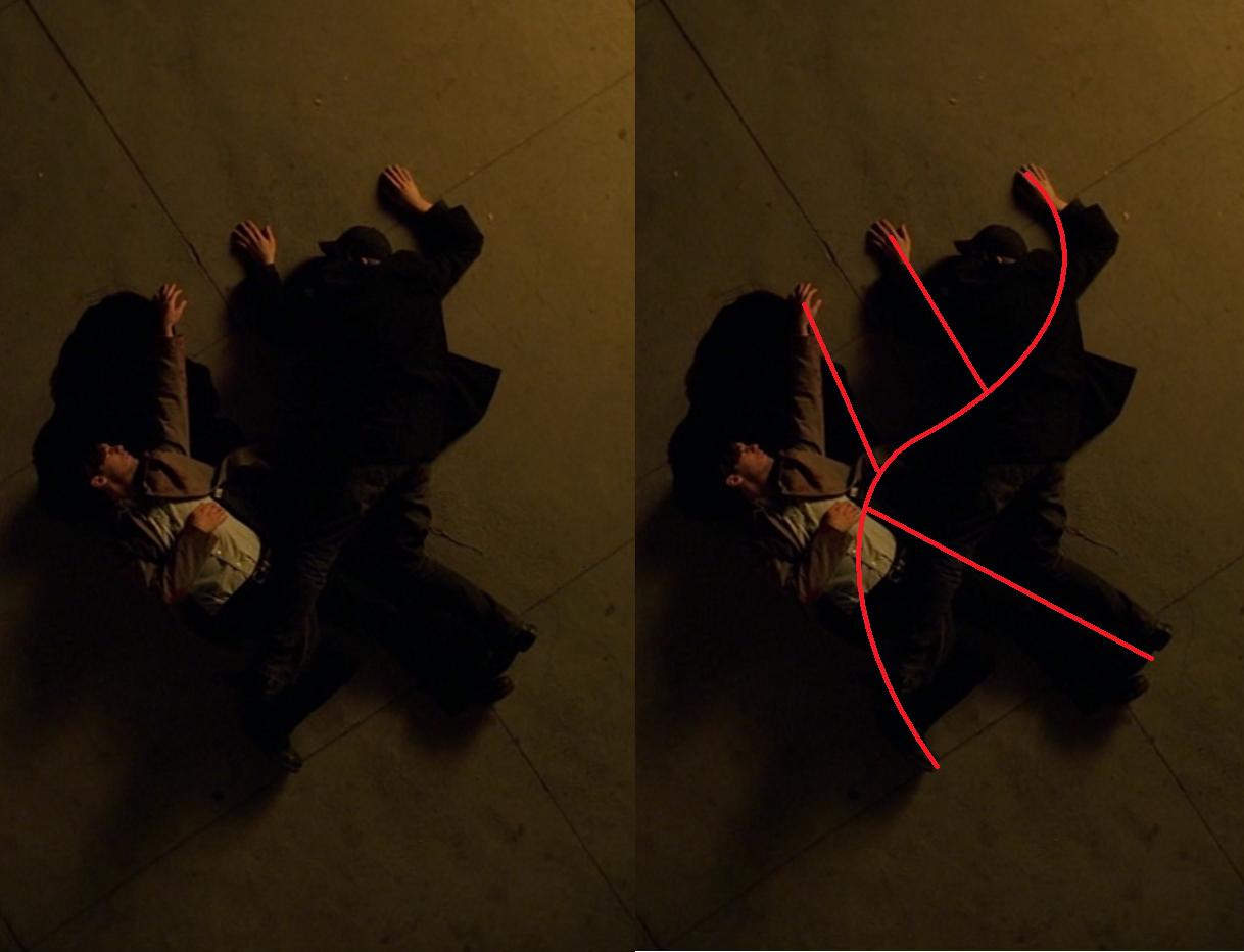 - Actually, the stones didn't use any negative space to create the Symbol--the empty space was used like a dot-to-dot. The knives don't create any curvy spine, you have to either create one in your mind or follow a very angular negative space. — RyanGibsonStewart (talk) 00:40, 4 April 2007 (EDT)