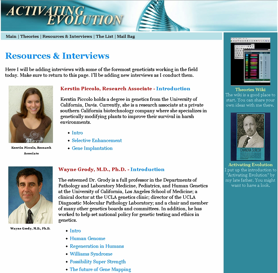imported>Hardvice The Resources page of activatingevolution.org contains interview links. {{image-screenshot}} from activatingevolution.org Category: Heroes360 Images |