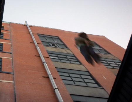 Fiona flies away after being thrown through a window. (Under the Mask)