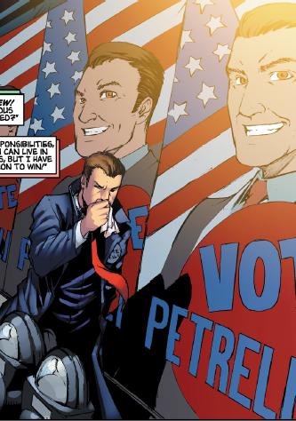 imported>Ryangibsonstewart Nathan ponders his power while walking through the streets of New York, lined with posters from his campaign. {{image-screenshot}} from Graphic Novel:Trial By Fire Category: Plot Point Images [[Category: Graphi |