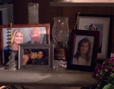 Several photographs are set up at Niki's funeral in the Dawsons' home.