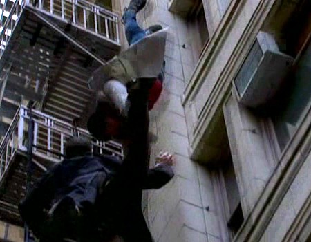 Nathan Petrelli flies to rescue his brother Peter after Peter jumps off a building.