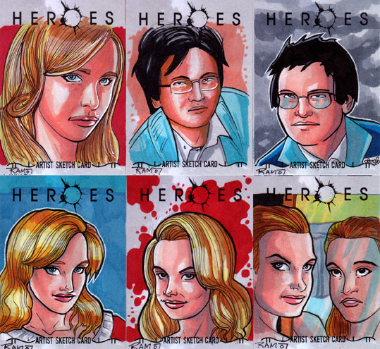 Richard A. Molinelli draws several trading cards.