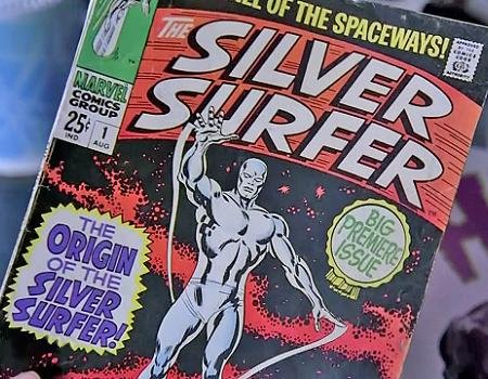 Candice shows Micah several comic books, including Silver Surfer.