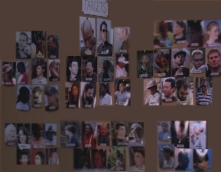 Several frames are merged together for a complete rendering of the Targets gallery; showing many unknown people, as well as many familiar faces like: Peter, Sylar, Hiro, Claire, Haitian, Matt, Mohinder, Knox, Maury, Monica, West, and Alex.