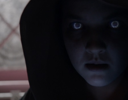 "The Shadow"'s eyes glow when using umbrakinesis.