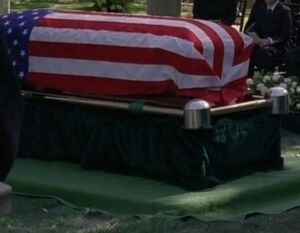 [[Image:Casket at Nathans Funeral.jpg|thumb|right|[[Peter]] gives a eulogy at [[Nathan]]'s [[Nathan's funeral|funeral]].]] |