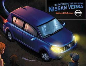 The Nissan Versa is featured at the beginning of every graphic novel.