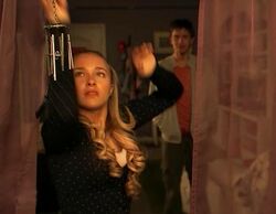 Claire Bennet hangs a wind chime outside her window to let the Haitian know she needs to speak with him. | |