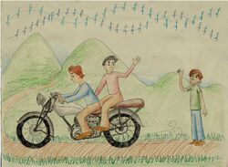 Young Drucker drew a cowboy riding a horse.
