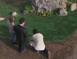 When Ian is eating food and drinking some soda with John Mulligan, he begins to feel happy. He looks down and sees that his happiness has made the grass beneath him grow into lush, green grass instead of the usual dull dark color. This may show that Ian's power is affected by his emotional state. (Purpose)