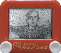 Christoph Brown creates Heroes art on a pocket-size Etch A Sketch.