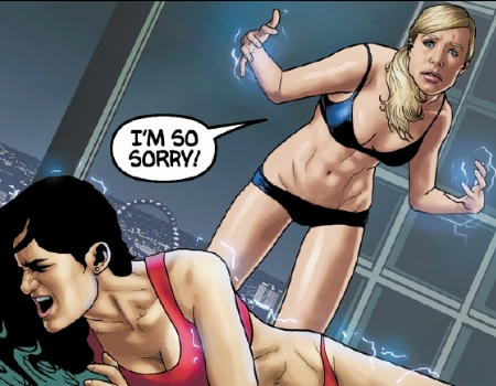 Elle accidentally zaps Abigail.