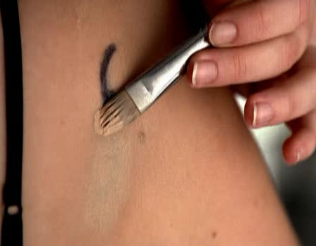 Jessica covers the tattoo of the symbol on her shoulder with makeup.