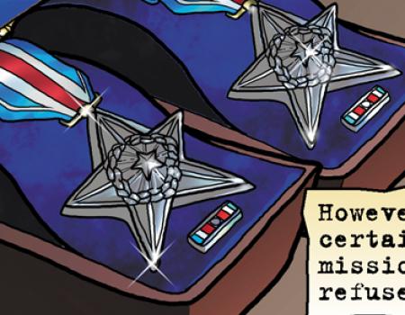 Dallas and Austin receive silver medals of valor for their Vietnam War actions.