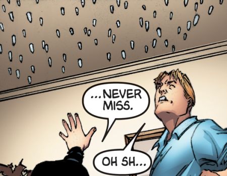 The German magnetically directs his bullets towards Devin.