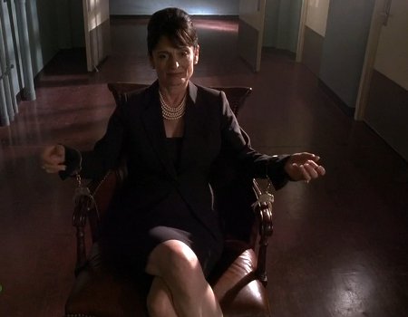 Angela is handcuffed in a dreamstate caused by Arthur.