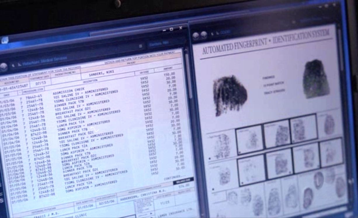 Micah talks to his computer to cross reference information about Niki and Tracy.