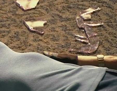 As Sylar approaches a downed and frightened Sandra Bennet, the Symbol is present in the shattered glass.