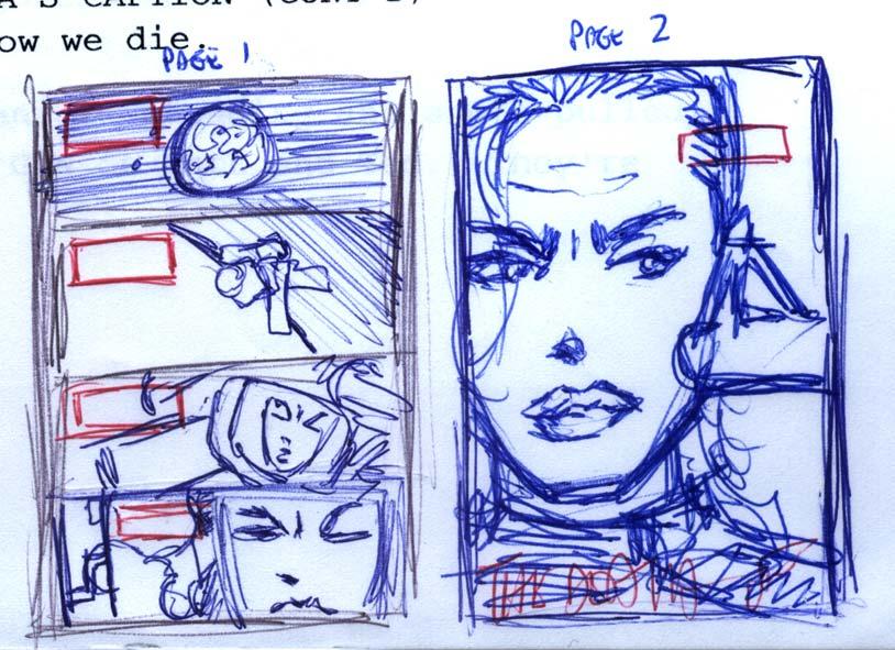 Jason Badower sketches a layout of pages 1 and 2 for The Death of Hana Gitelman, Part 1.