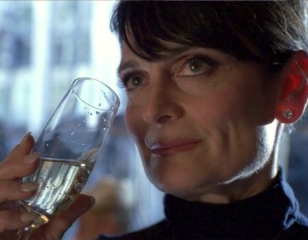 Angela drinks wine with her oysters.